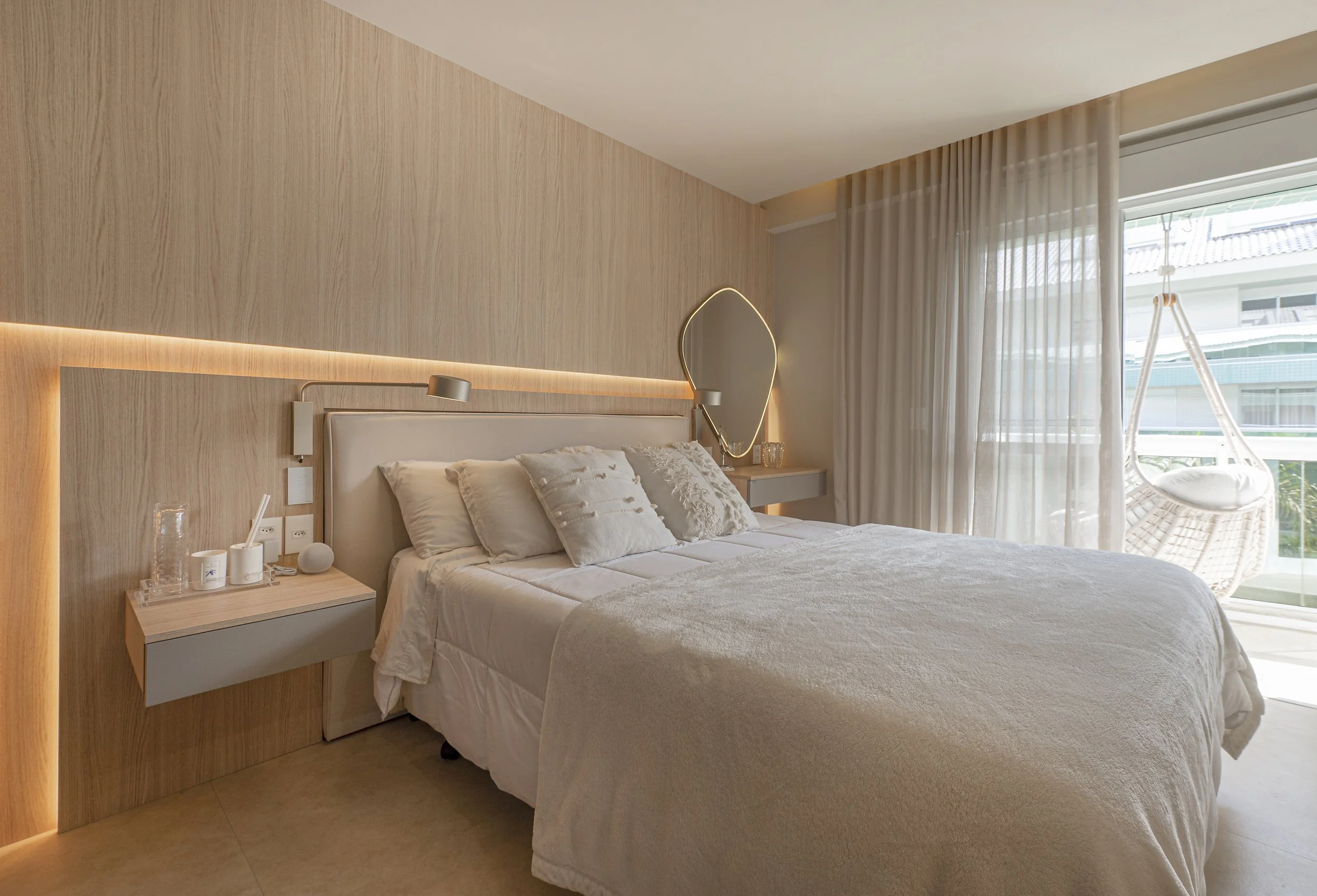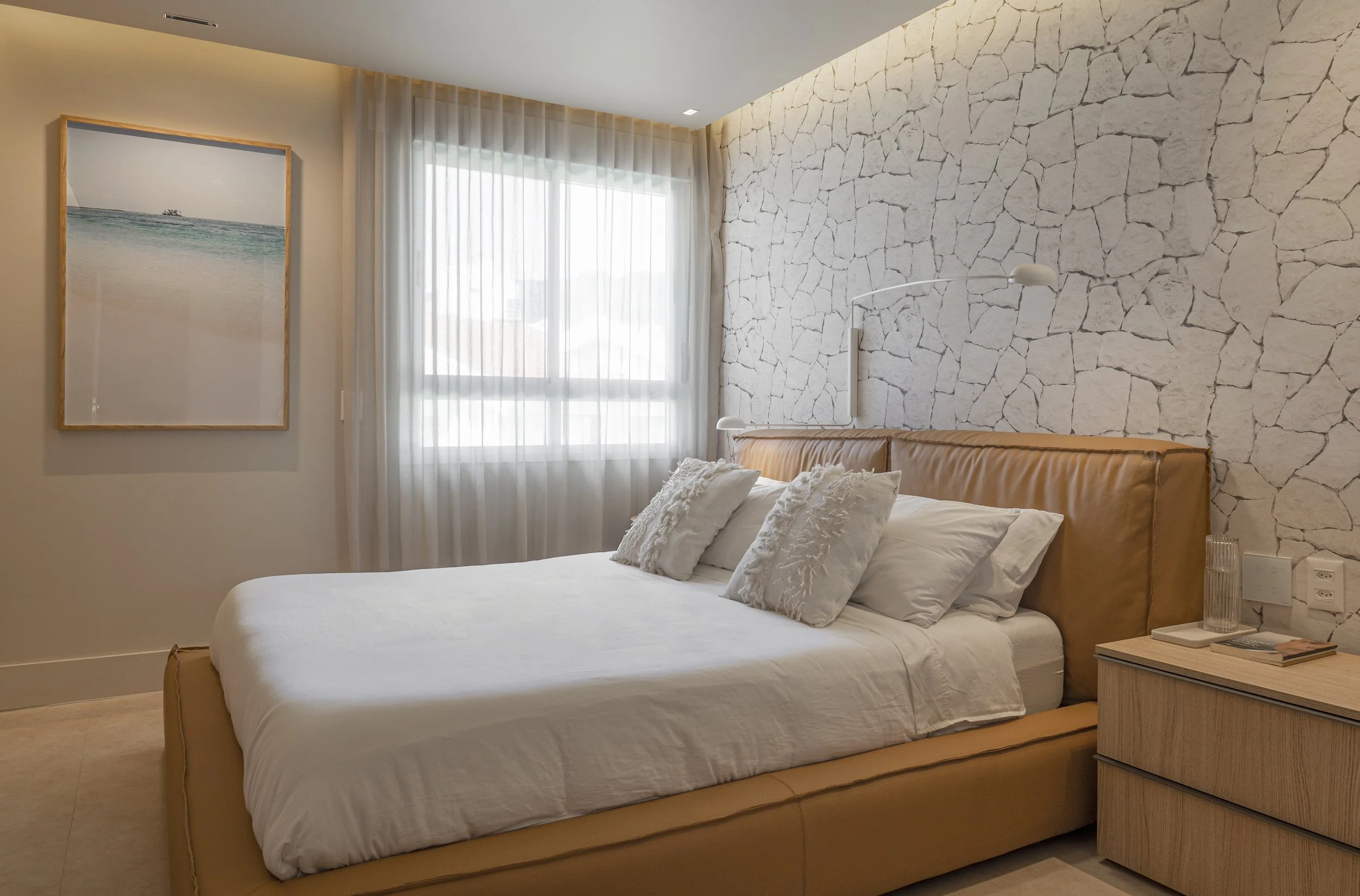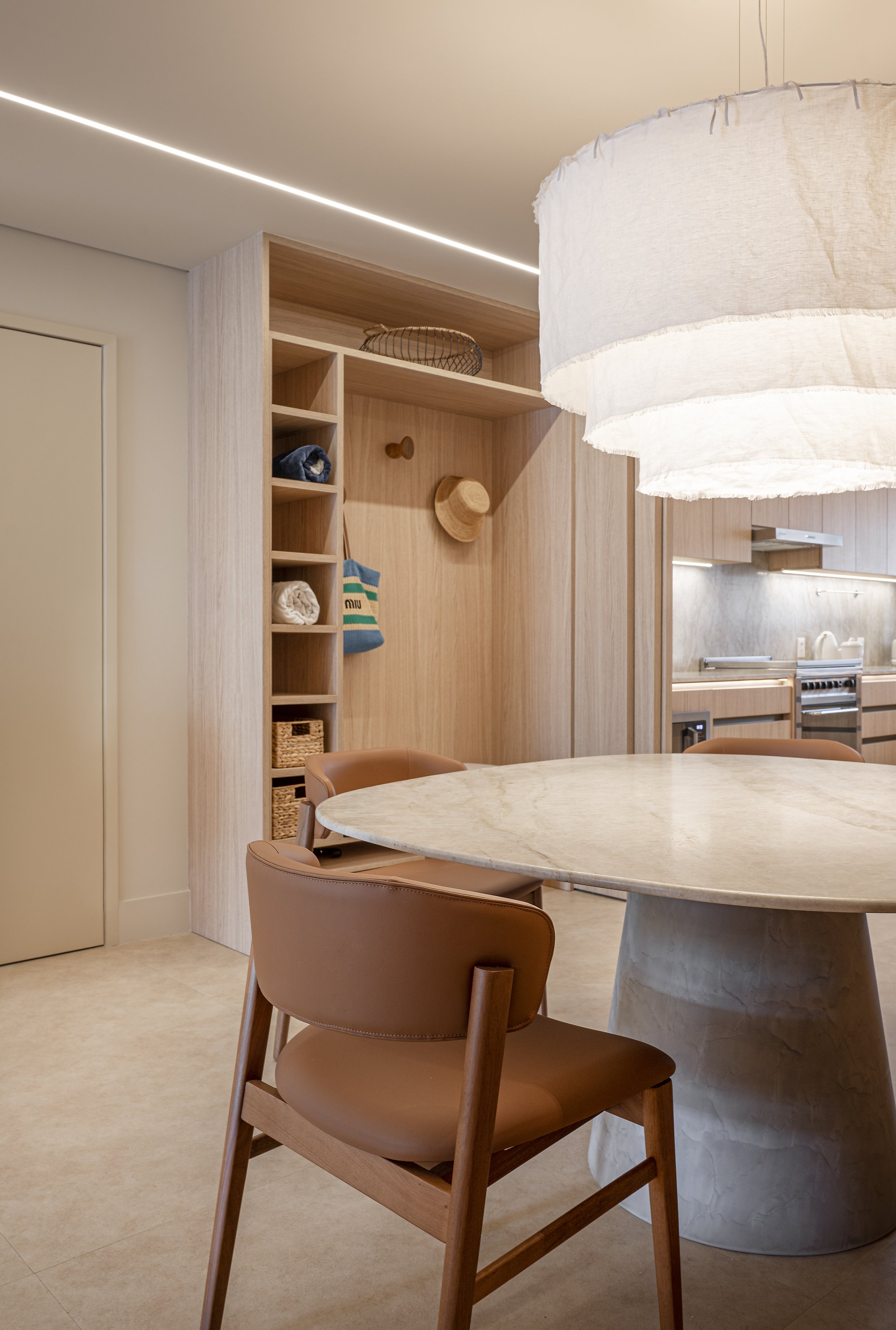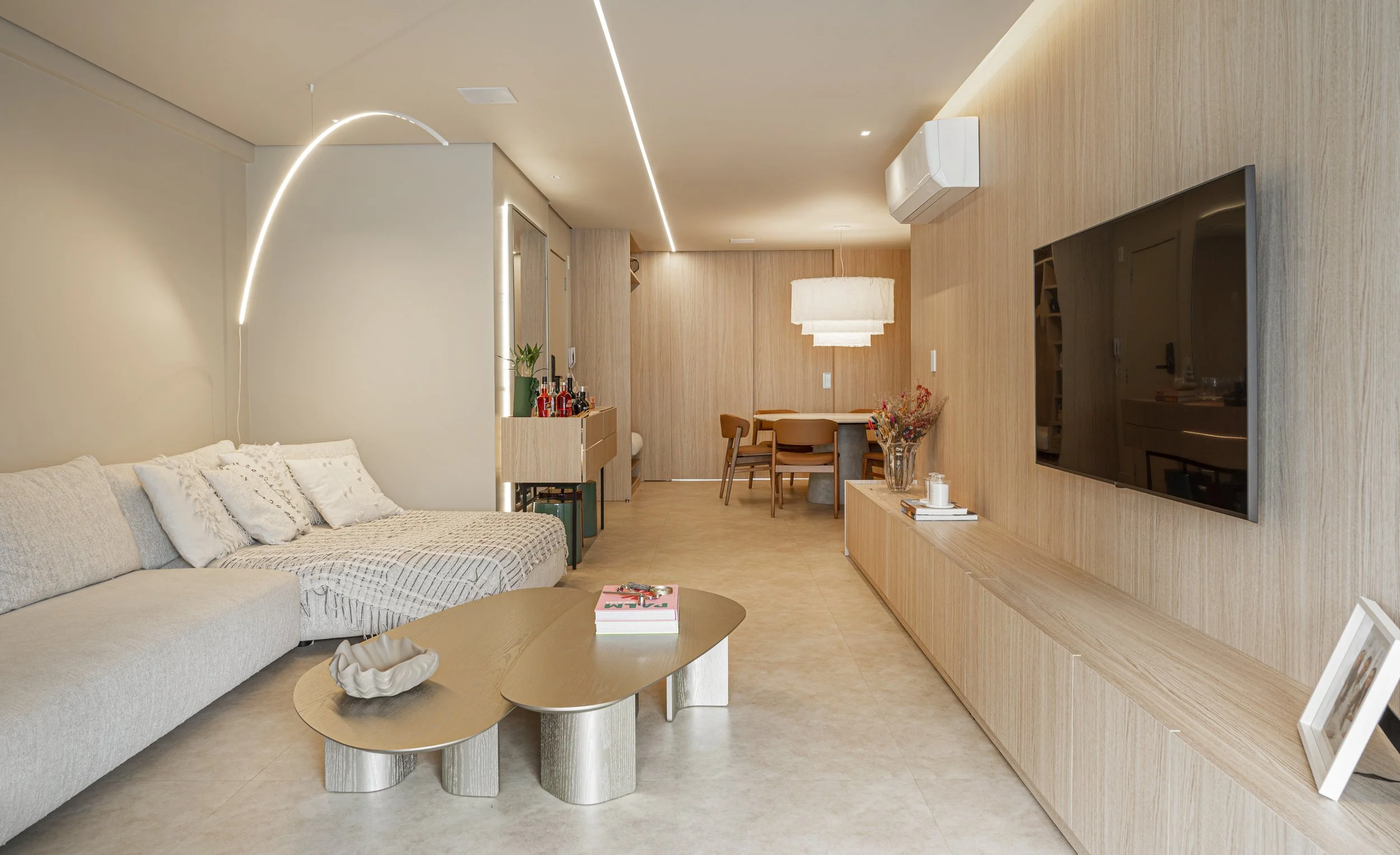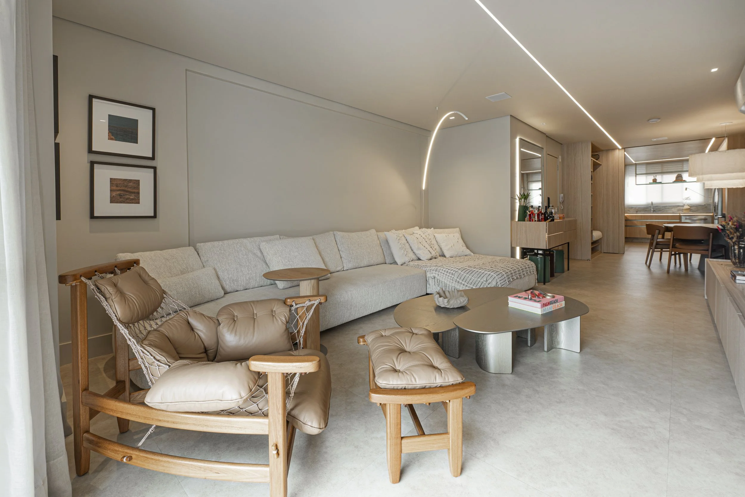 Desta vez, desenvolvemos o apartamento de praia com uma proposta que une a elegância sutil do minimalismo com a serenidade e funcionalidade do japandi, criando um ambiente leve, acolhedor e sofisticado, perfeito para momentos de descanso e convivência à beira-mar, valorizando materiais naturais e acabamento de alta qualidade.