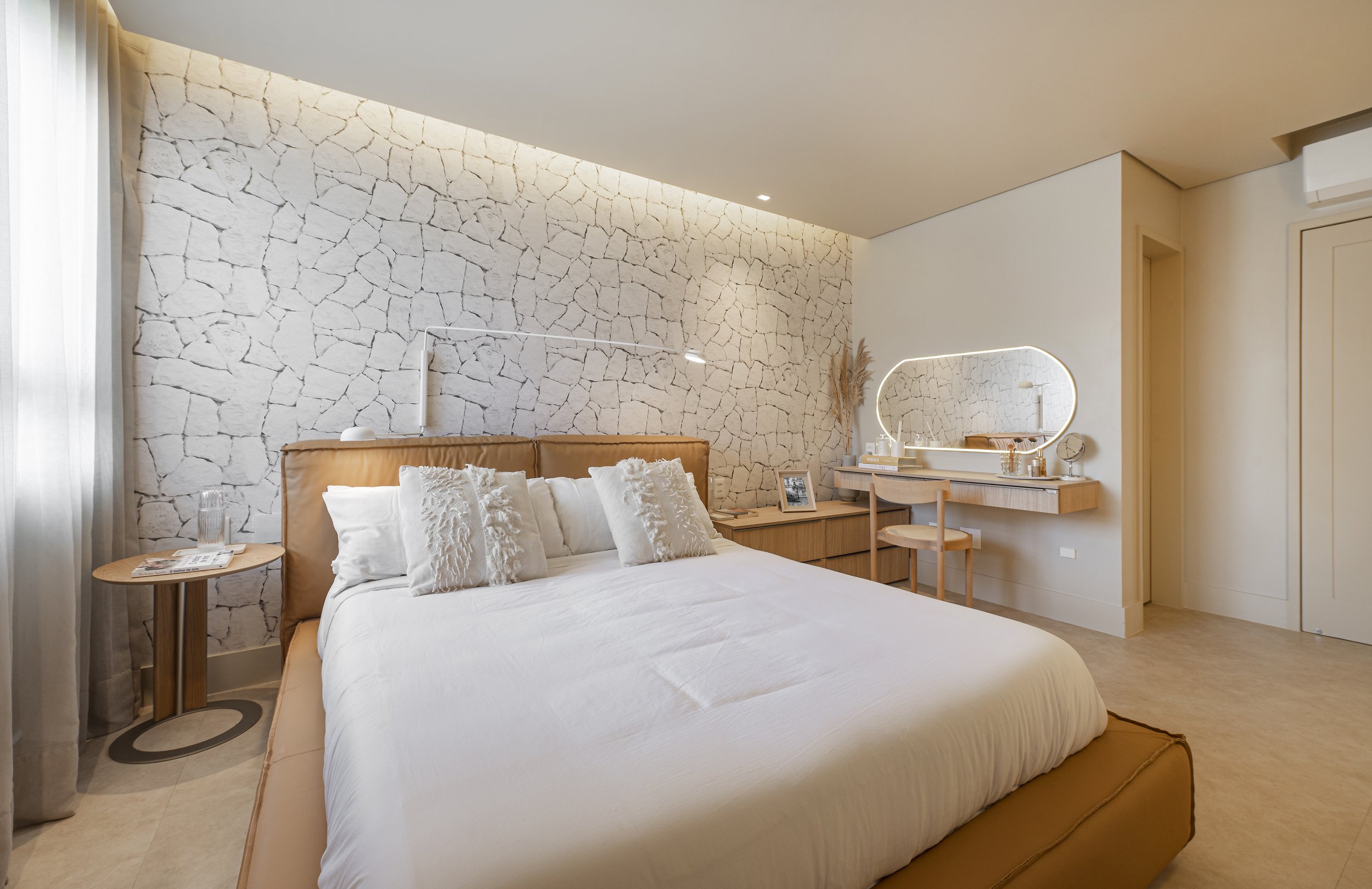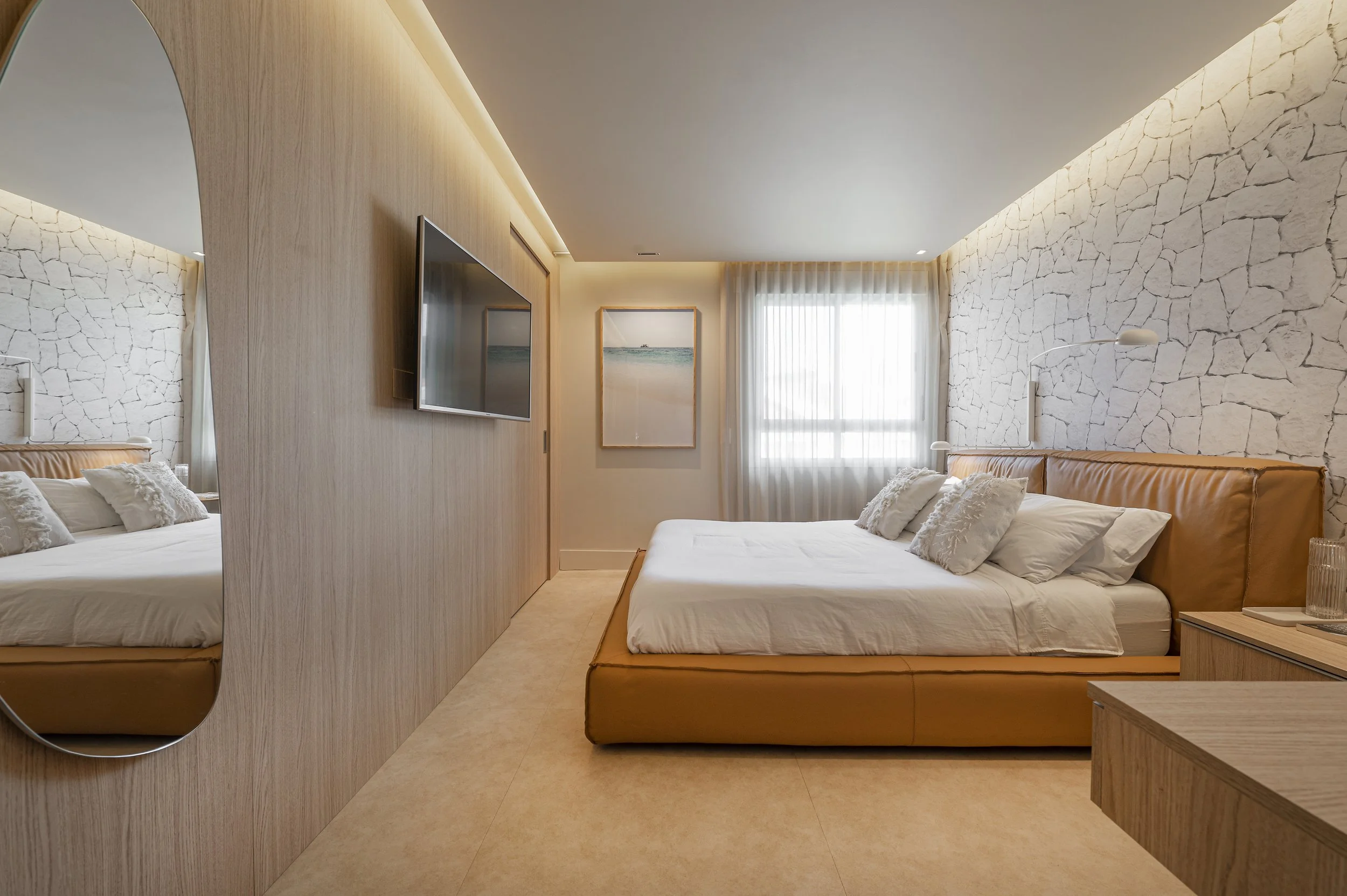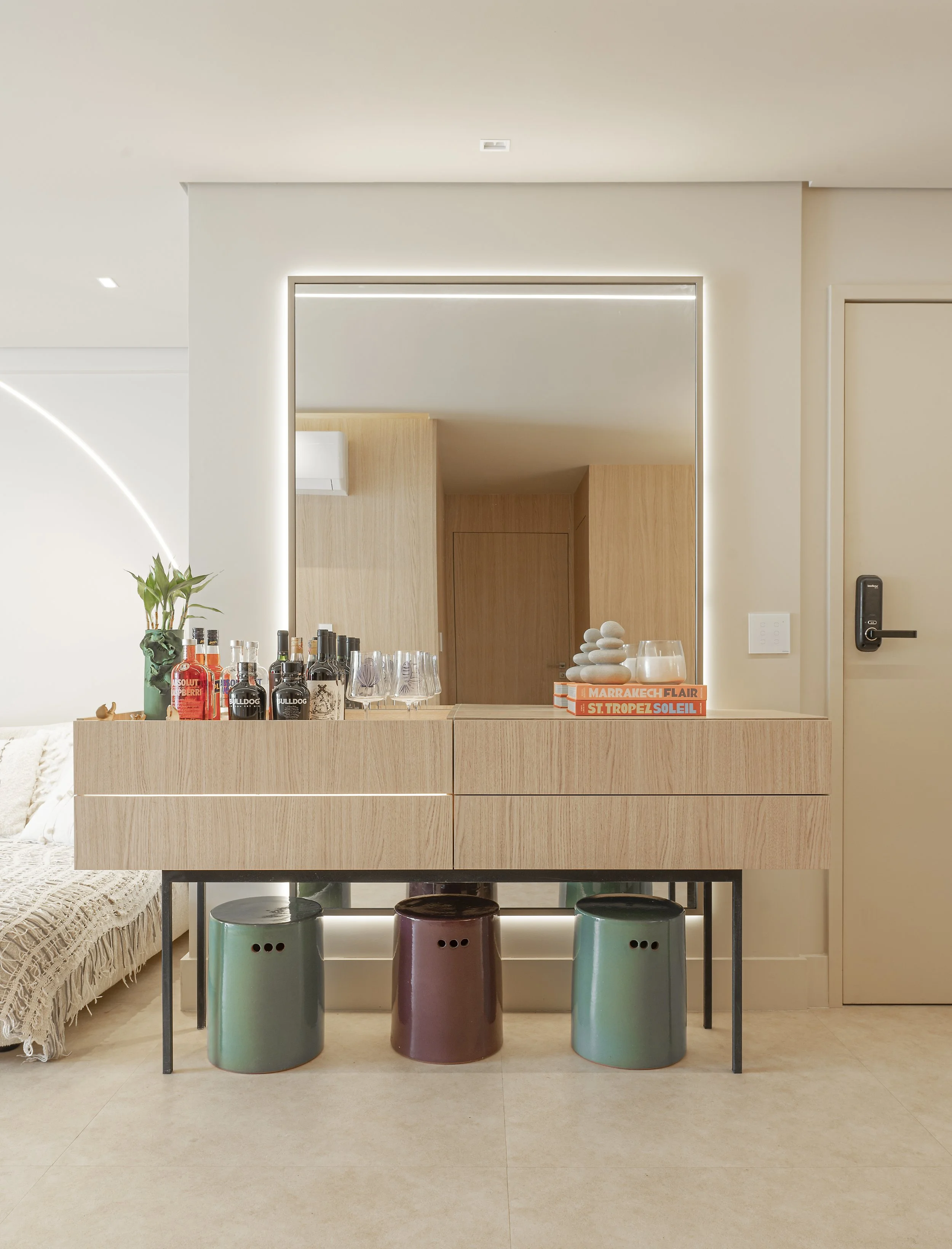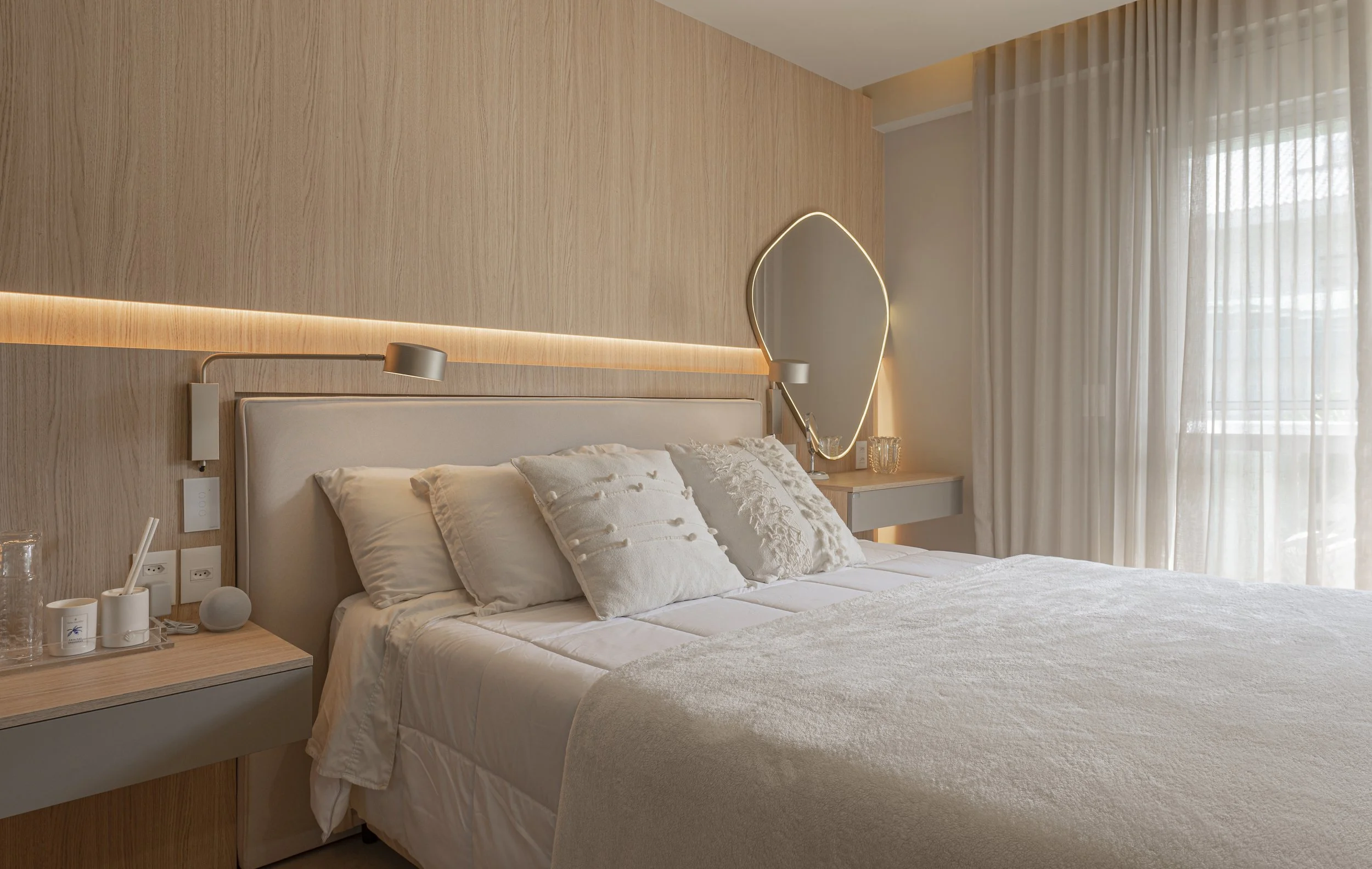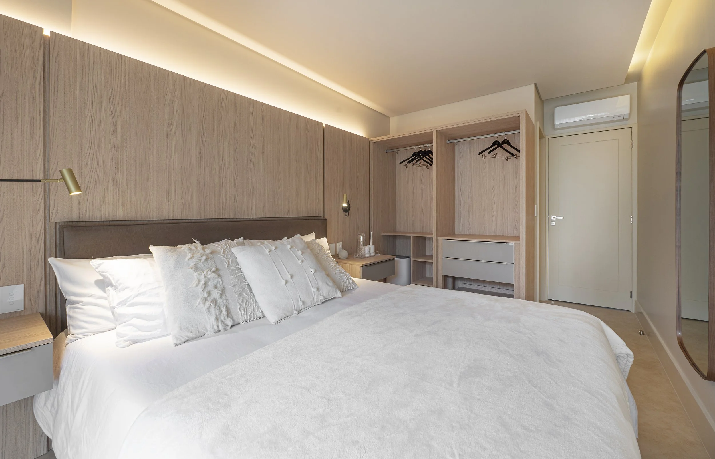 Desta vez, desenvolvemos o apartamento de praia com uma proposta que une a elegância sutil do minimalismo com a serenidade e funcionalidade do japandi, criando um ambiente leve, acolhedor e sofisticado, perfeito para momentos de descanso e convivência à beira-mar, valorizando materiais naturais e acabamento de alta qualidade.