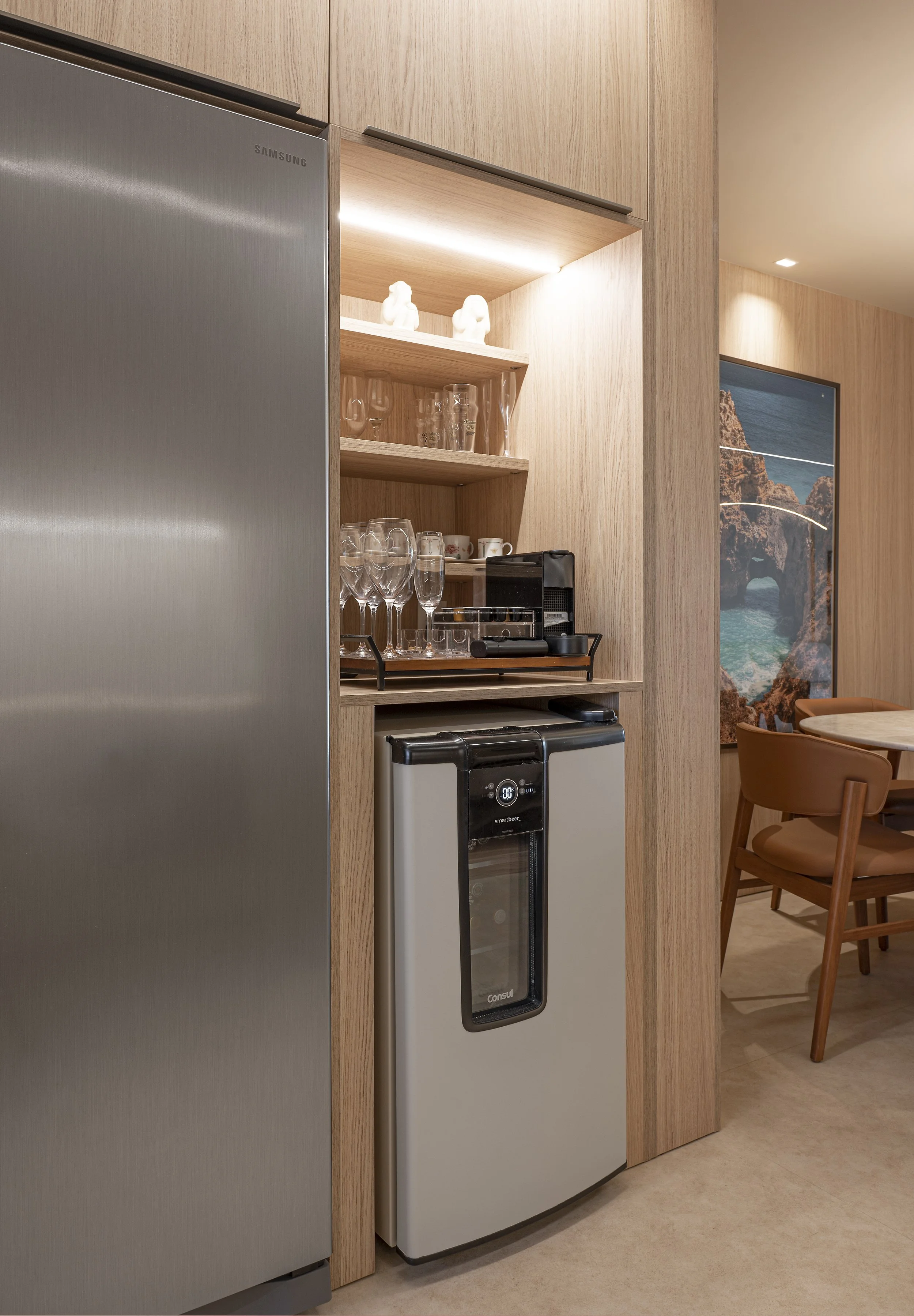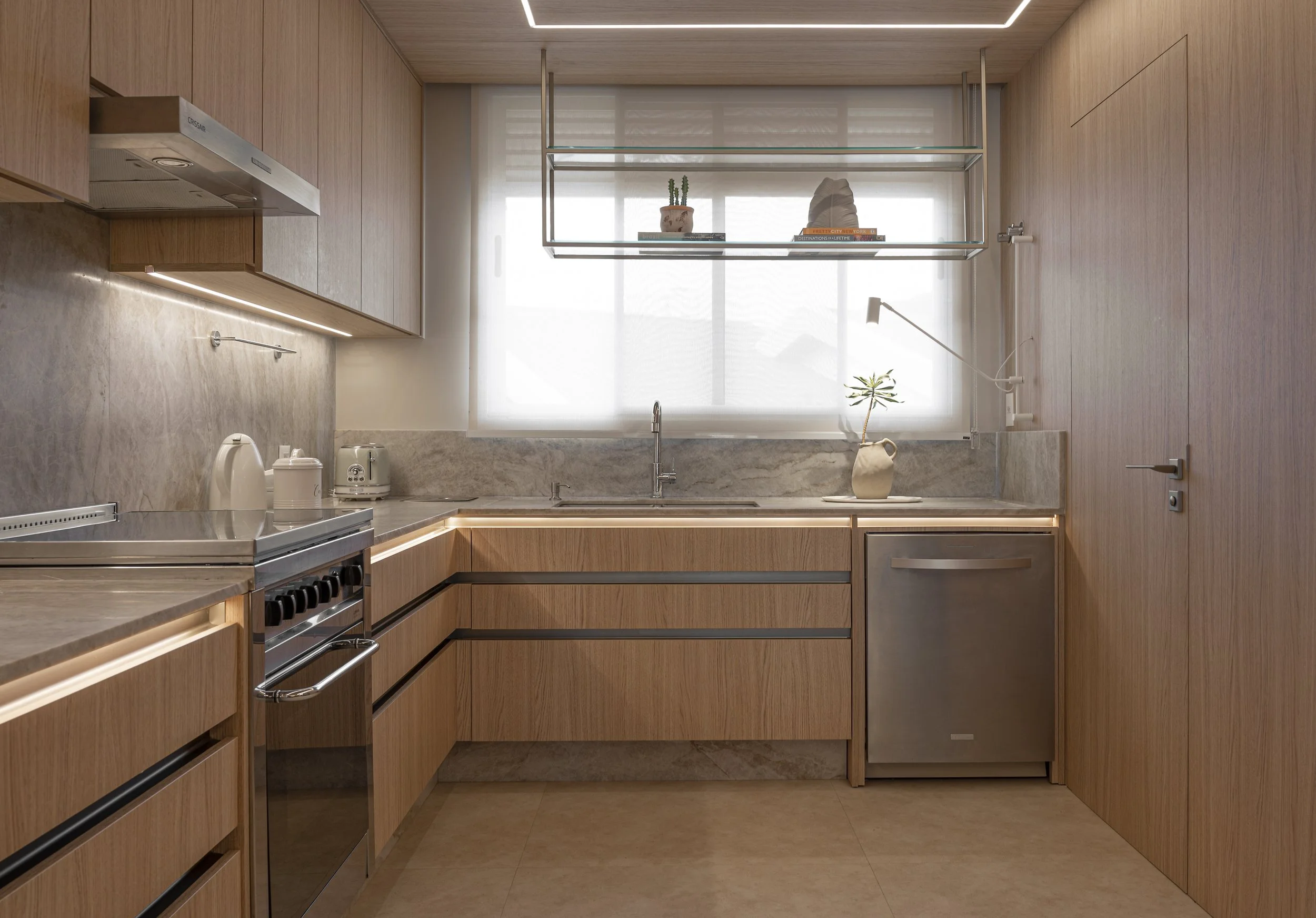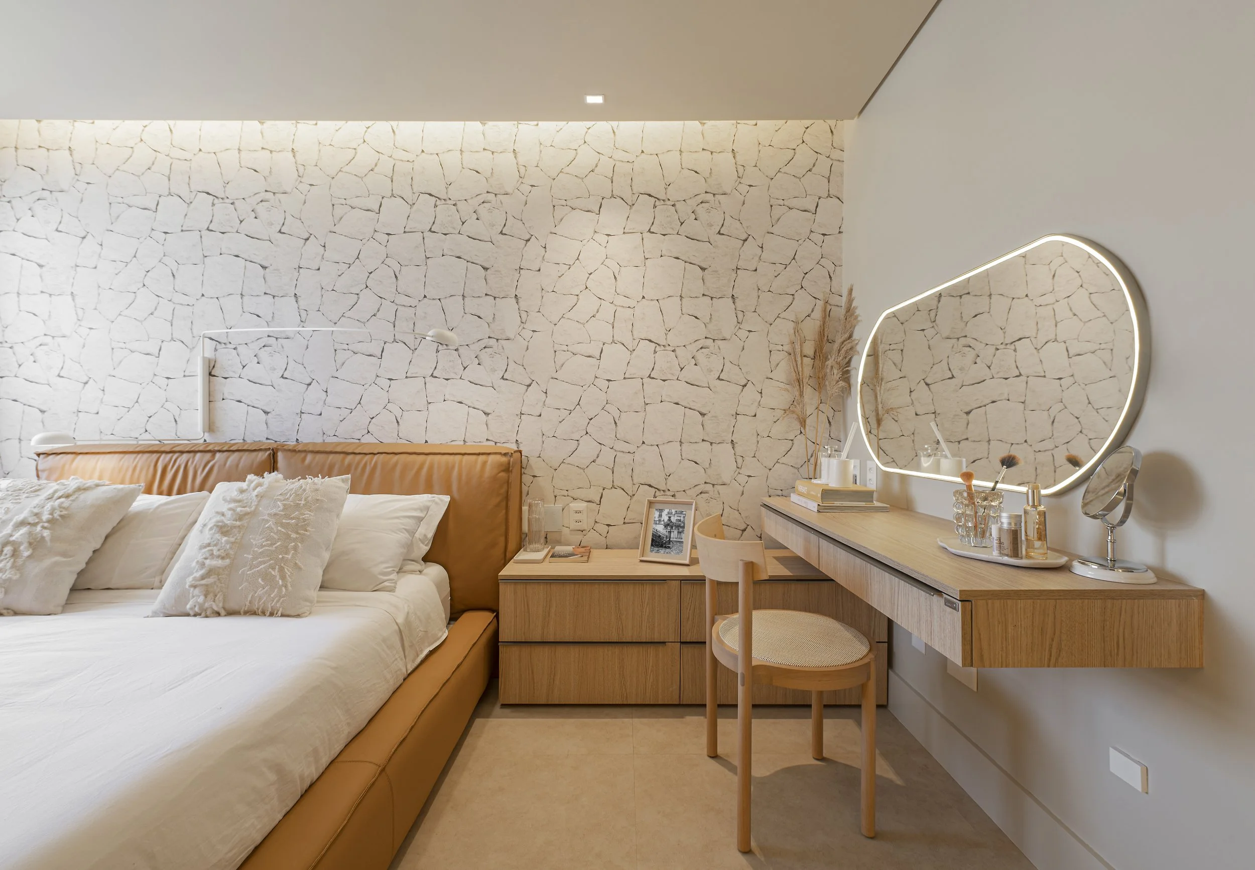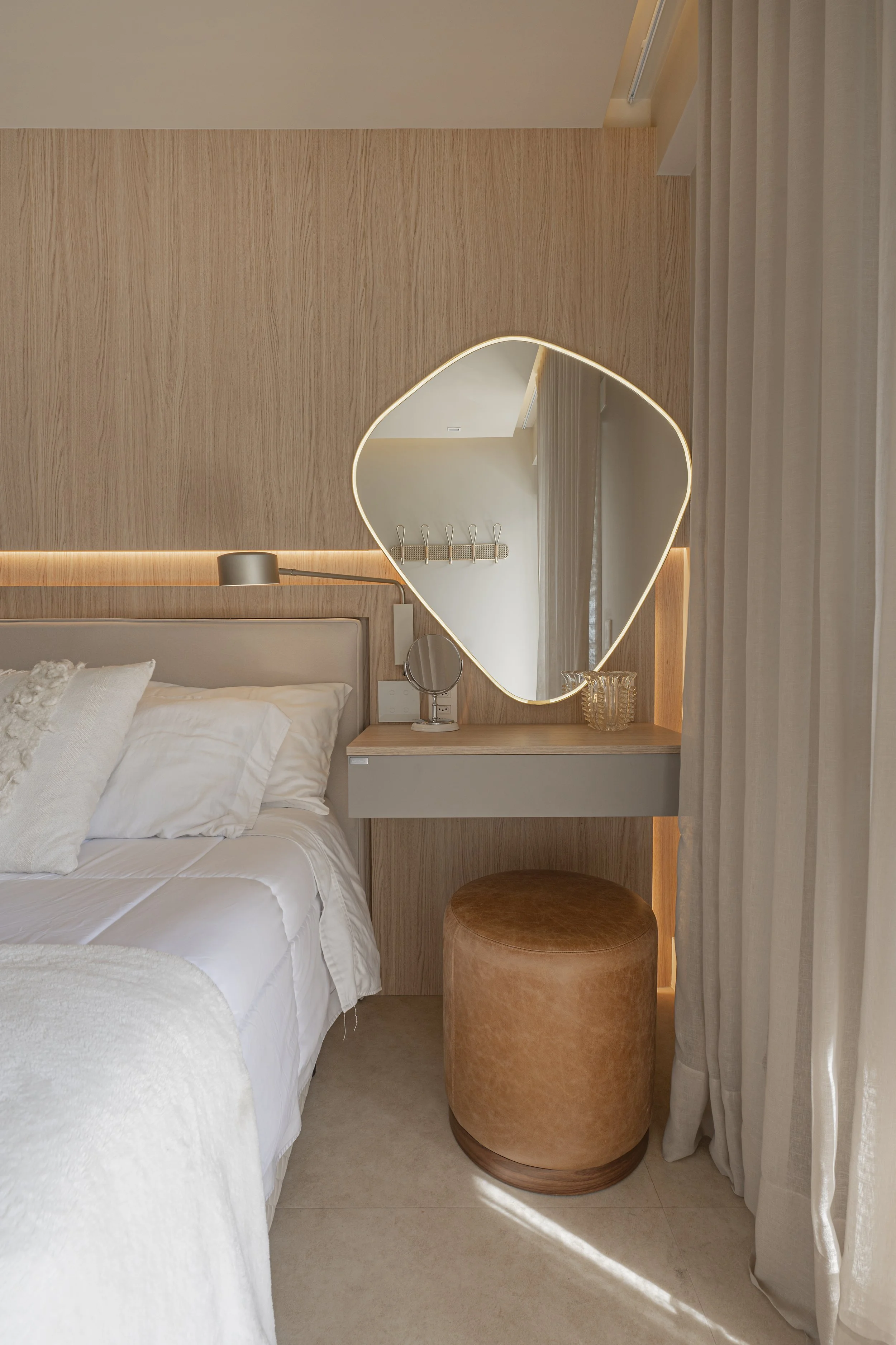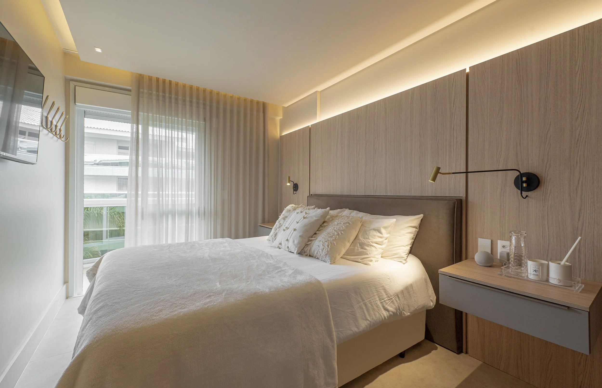 Desta vez, desenvolvemos o apartamento de praia com uma proposta que une a elegância sutil do minimalismo com a serenidade e funcionalidade do japandi, criando um ambiente leve, acolhedor e sofisticado, perfeito para momentos de descanso e convivência à beira-mar, valorizando materiais naturais e acabamento de alta qualidade.